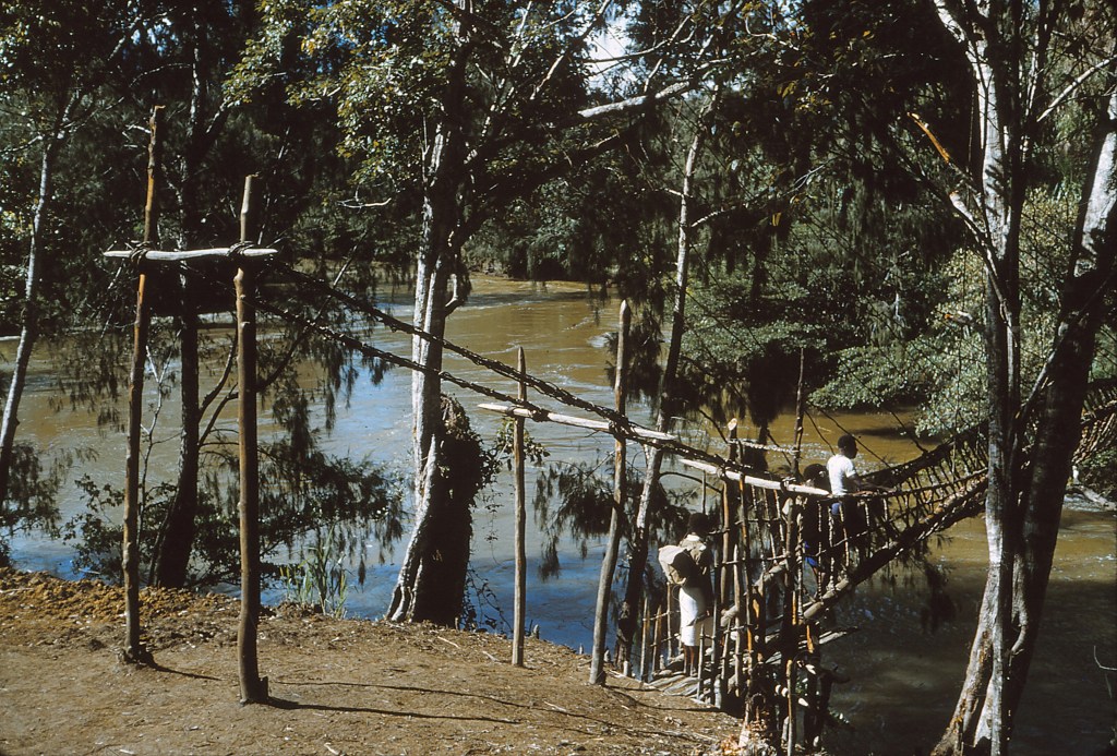 In the steep mountains, walking tracks were the best way for travel and people were strong and mostly healthy. They walked long distances and the women carried heavy loads. When mountain rivers were too wide to wade across, they had the skills to build strong suspension bridges of timber and vines. Men and women were skilled at crafts of spinning and weaving, making their own clothes from natural fibres and plant material, and their own tools and weapons. Their language was complex, sophisticated and elegant. They had a traditional system for economic exchange with neighbouring tribal groups.