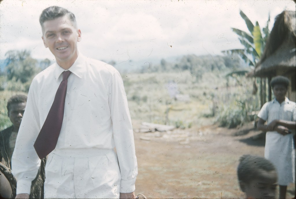 “As I sit this Sunday morning, scanning the range with its sparse covering of timber and the undulating hills of kunai grass, with the morning shadows, giving the gullies an even deeper appearance, I wonder who at home is upholding us in prayer. On the track to Tend is the Reverend Gordon Young striding along with a number of local natives and some boys from the Administration station. Just ahead of him is Setepano Nabwakulea, one of our teachers. They are going to take services at two places in the northern end of the valley from the mission station. My assignment for today is the service here.