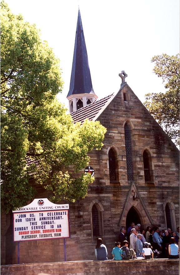 The 1880s were a period of exceptional industry in church extension and building. It was a prosperous period in general in the community. In that decade, the Presbyterians in NSW more than doubled their number of church buildings. The Wesleyan Methodists built 100 new church buildings in that decade, many of them in rural communities. The Congregationalists increased their metropolitan church buildings from 22 to 35 in the same period. At the same time, the population of NSW was growing rapidly, more than doubling between 1871 (501,579) and 1891 (1,118,250 people).[16] By the late 1880s it was becoming uncomfortably clear to all the churches that this increased population was not all to be found in regular church attendance, with reports demonstrating that while 50% of the adult metropolitan population could be found in church in 1880, by 1890 the numbers had reduced to 40%. Even the Wesleyans, with a history of connecting with working people, were no longer attracting this sector of the population, and the Presbyterian and Congregationalists were also recognizing that they were largely middle class institutions.[17] In response, many denominations turned to evangelistic campaigns and vigorous church extension, in competition with grander and more splendid church buildings, highly visible in their local landscape.